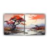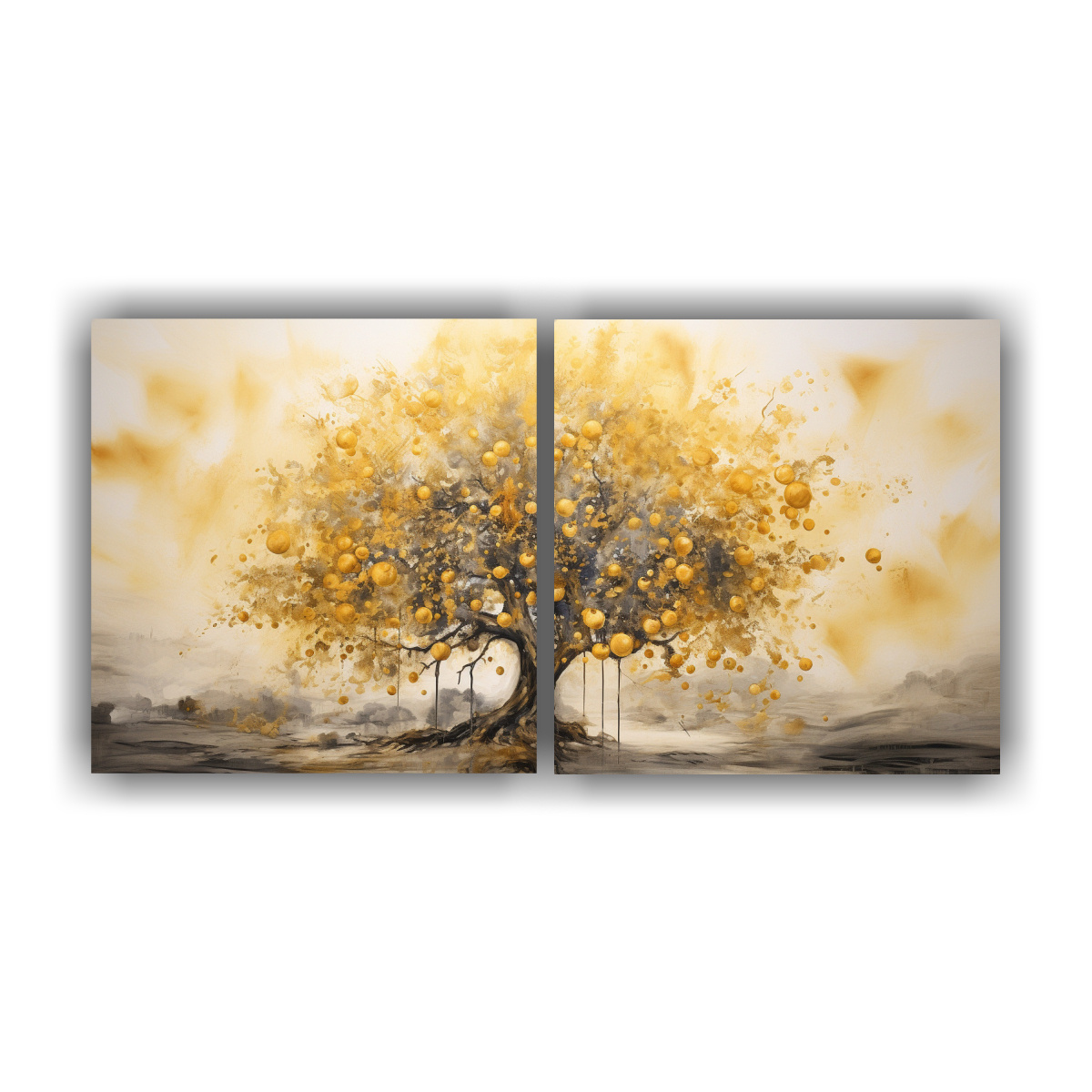 Pintura Abstracta Innovadora De Diptico Decorativo A Árbol De Frutas Oro Y Negro