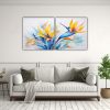 Este cuadro abstracto Aves del paraíso en combinación de colores azules se verá espectacular en tu sala de estar o comedor Colócalo sobre un sofá o una mesa central para crear un punto focal llamativo Combínalo con cojines en tonos azules y verdes para unir la decoración de tu espacio ¡Sorprende a tus invitados con esta pieza de arte excepcional!