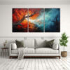 Diptico Inspiracion Naturaleza viva oil painting abstract painting quantum entangleme – Coral, Turquesa, Azul Marino grisaceo, Carmesi, Menta, Plateado