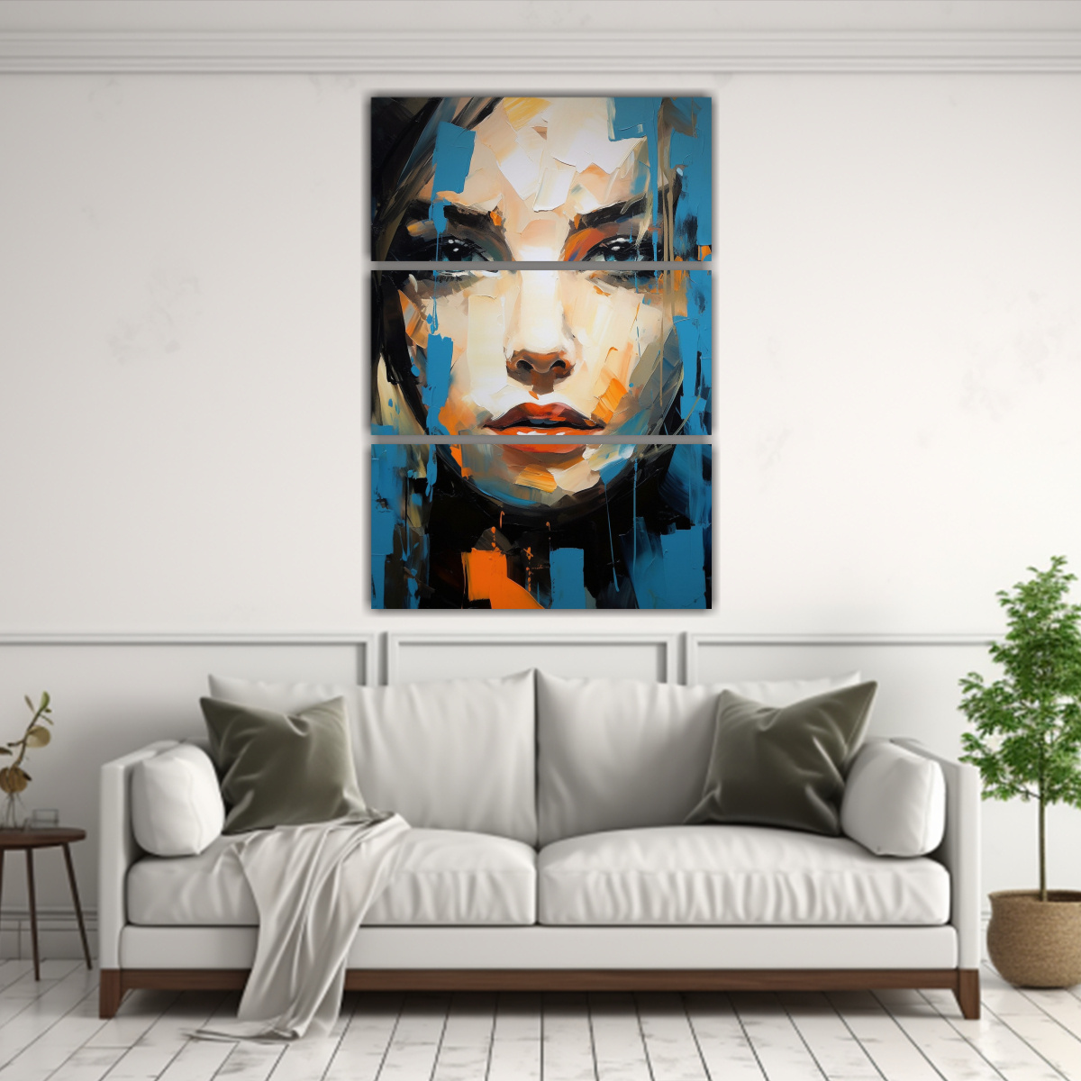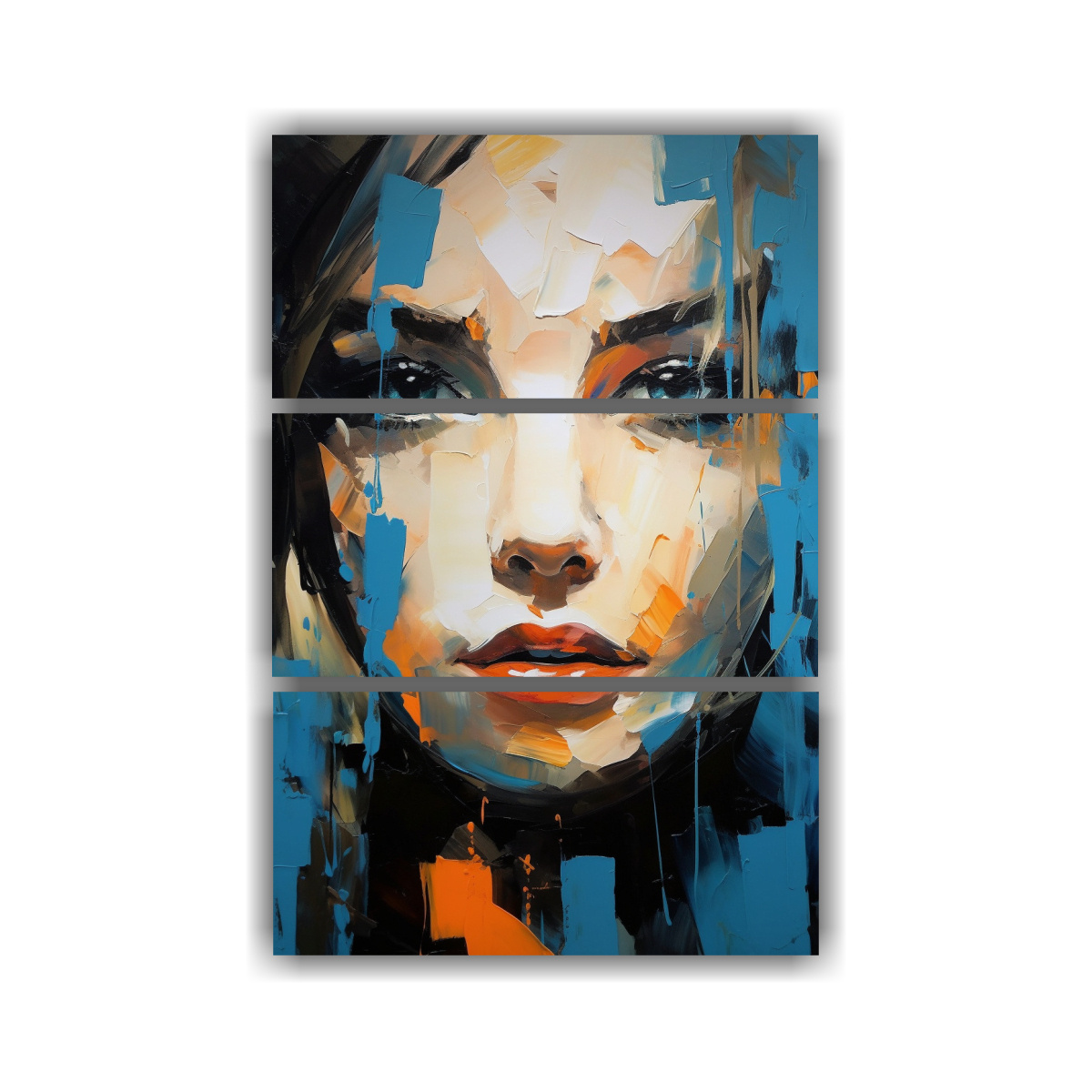 Esta pintura abstracta de una joven con ojos azules sería ideal para colocar en una sala de estar moderna Los colores y el diseño exclusivo del cuadro se combinan perfectamente con muebles en tonos neutros como blanco, gris o negro También se puede destacar en una habitación minimalista, donde el cuadro se convierte en el punto focal de la decoración ¡Agrega un toque de estilo y elegancia a tu espacio con esta impresionante obra de arte abstracta!