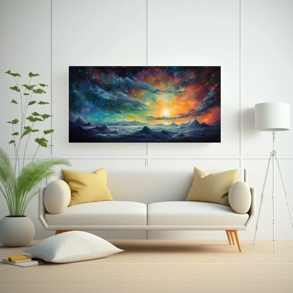 Expresa tu estilo con esta pieza que combina la magia de un cielo nocturno con la alegría de un arcoíris Con tonos vibrantes y elegantes, este lienzo transformará cualquier habitación en un espacio lleno de encanto Aprovecha nuestras entregas rápidas y envíos express a regiones