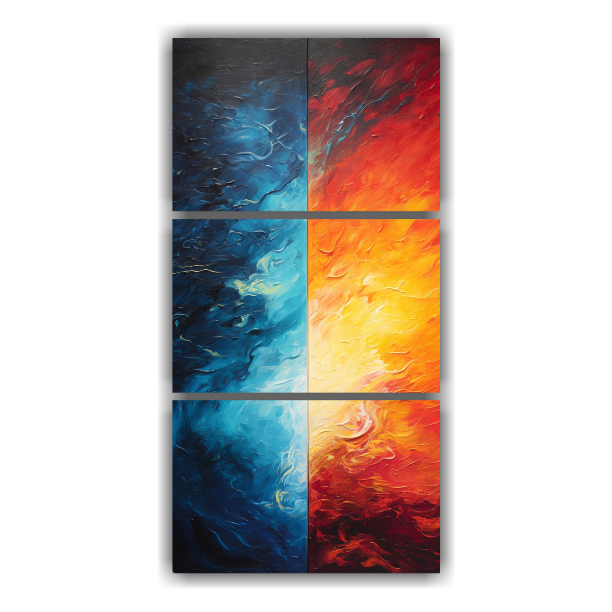 Decora tu espacio con el Cuadro Pintura Abstracta Lienzo Set 3 de DecoCuadros Expresión de la transición del día a la noche en tonos Coral, Turquesa, Azul Marino grisaceo, Carmesí, Menta, Beige y Verde Azulado Diseño exclusivo, alta calidad y precios baratos Entregas rápidas y gratis en Santiago Envíos a regiones express