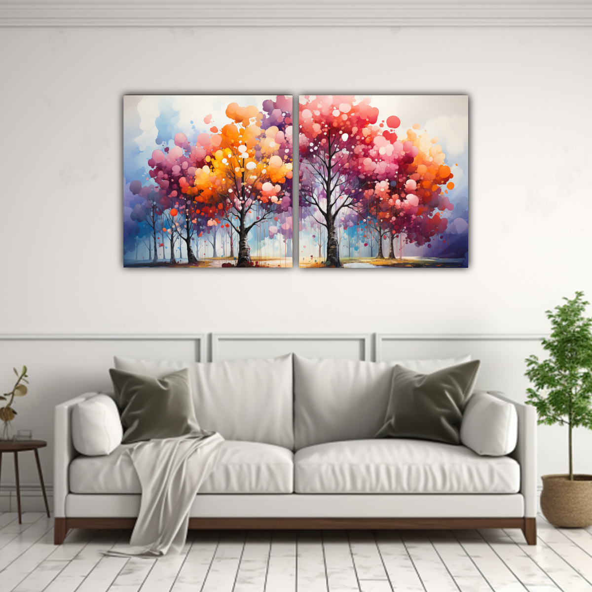 Este cuadro Pintura abstracta Lienzos Hermoso Espacio Arcoíris Árbol Abedul es ideal para decorar el salón de tu casa Colócalo sobre la pared principal, justo encima del sofá, para crear un punto focal impactante Combina los tonos de la pintura con cojines o cortinas en tonos neutros para resaltar sus colores y darle un toque moderno y sofisticado a tu espacio