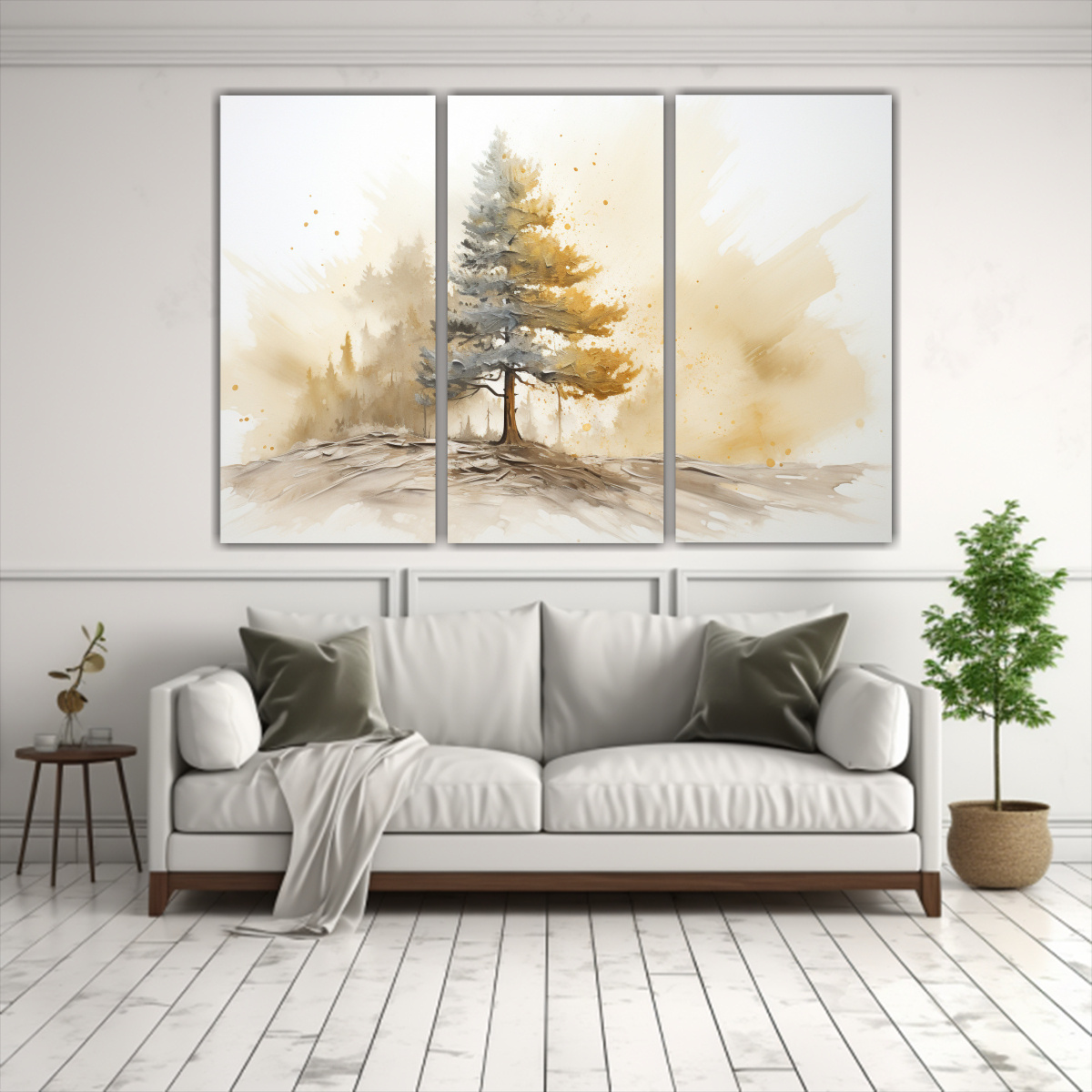 Renueva tu hogar con este cuadro abstracto luminoso que fusiona la elegancia del árbol de pino blanco y dorado Envíos rápidos y gratuitos en Santiago, y express a regiones Calidad y estilo para tus espacios