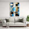 Este cuadro abstracto de formas geométricas luminosas sería perfecto para decorar una sala de estar moderna Colócalo sobre un sofá gris claro para resaltar los tonos plateados y verdes, y compleméntalo con cojines en tonos azules y verdes para lograr una armonía visual ¡Añadirá un toque de estilo contemporáneo a tu espacio!