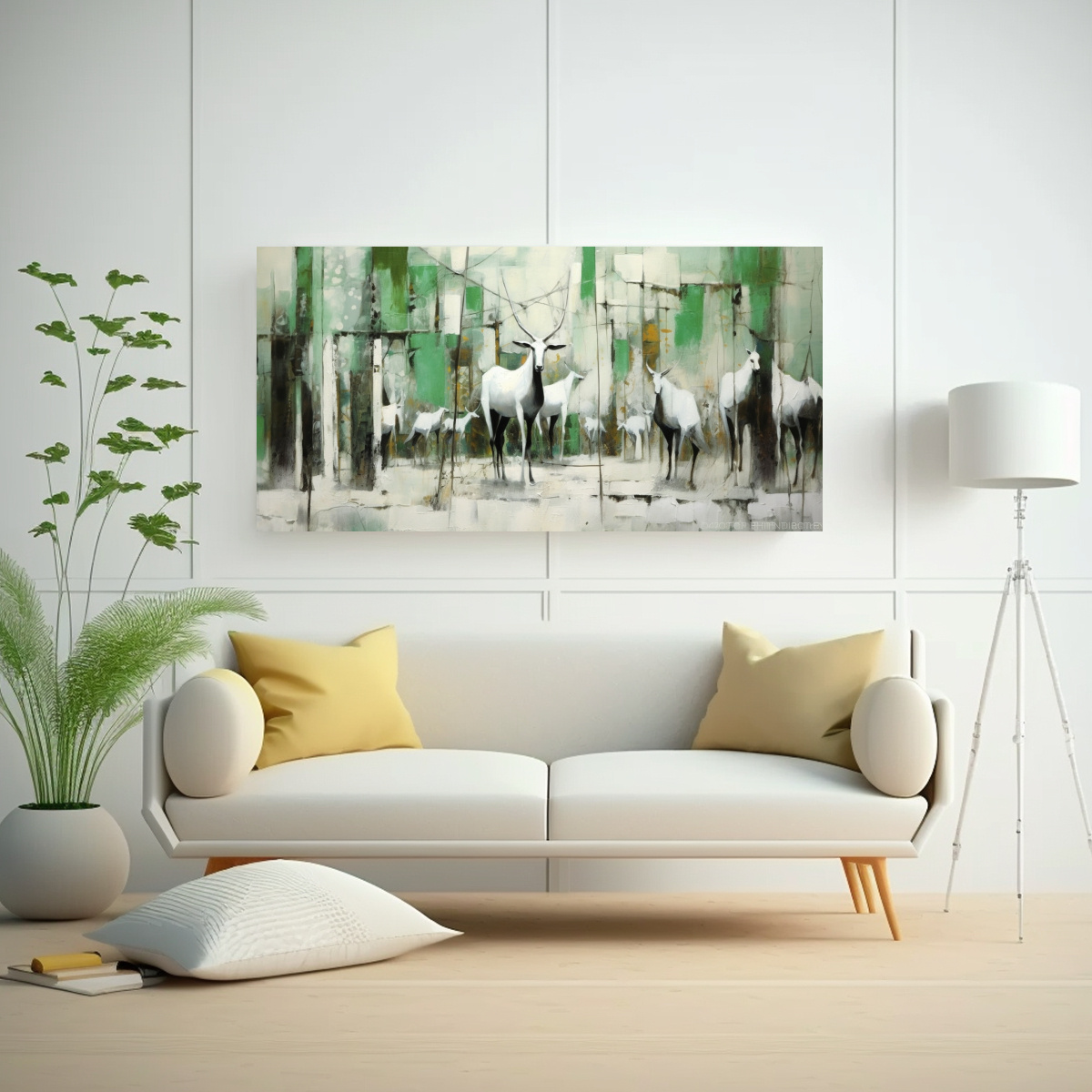 Este cuadro quedará espectacular en la sala de estar, sobre un sofá beige, creando un contraste elegante y sofisticado Combínalo con cojines en tonos plateados y elementos decorativos en verde para un ambiente luminoso y moderno