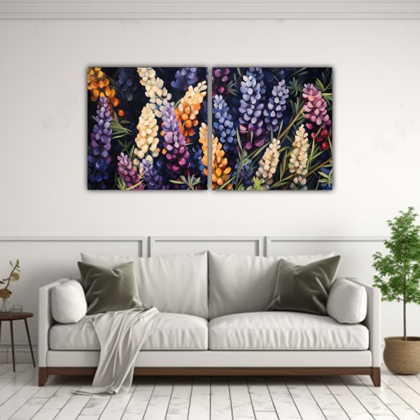 Este cuadro abstracto lupina en estilo Estilo óleo detallado es ideal para colocar en el salón principal de tu hogar, sobre un sofá de color neutro para resaltar su belleza y elegancia Combínalo con cojines en tonos plateados, azules y grises para lograr un ambiente armonioso y sofisticado