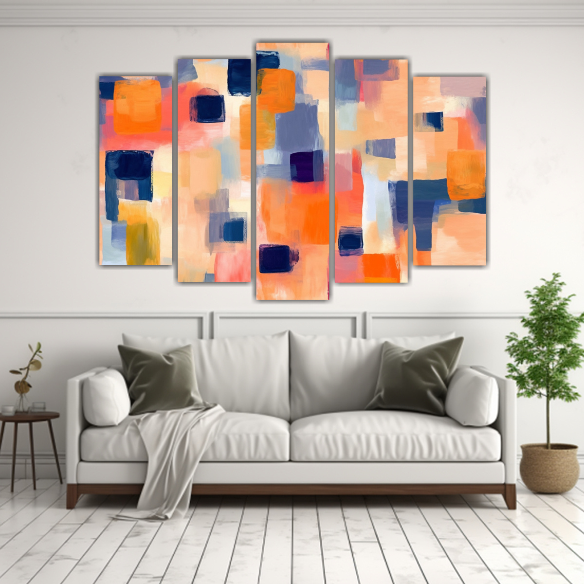 Pintura Abstracta Majestuosa Cuadrado Naranja Sobre Fondo Beige