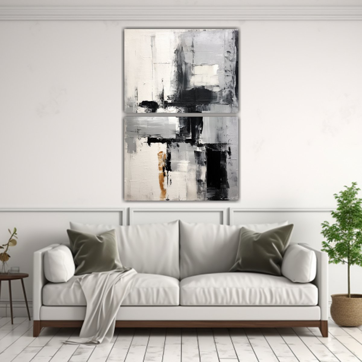 Pintura Abstracta Minimalista Con Pinceladas Amplias Y Rudas En Bastidor De Patrón Intenso Dos Telas
