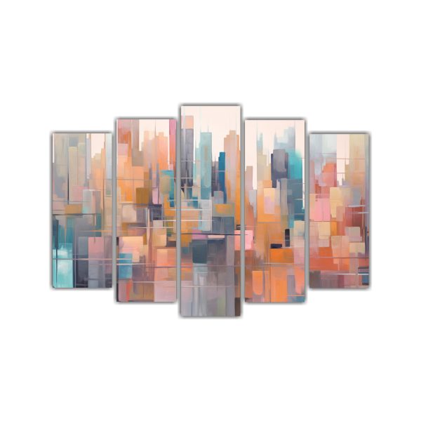 Pintura Abstracta Minimalista De Ciudad Geométrica Que Transmite Altura.