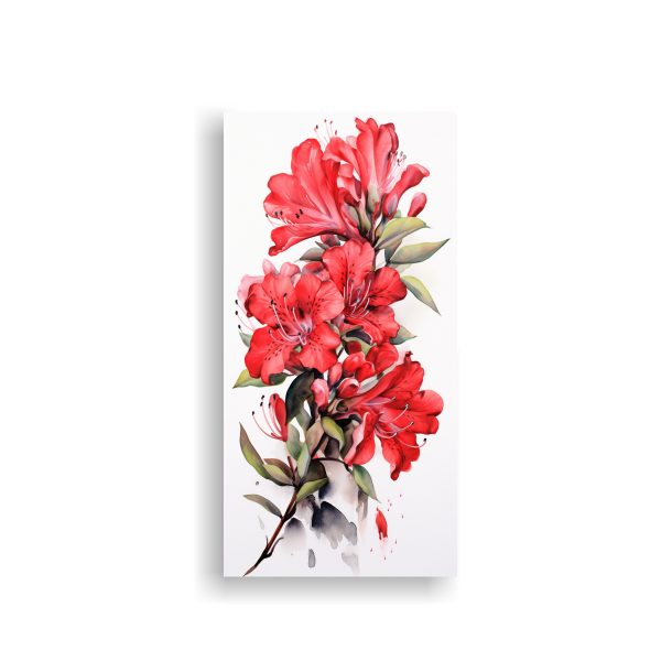 Pintura Abstracta Minimalista De Flores De Rododendro En Colores Rojo Y Negro