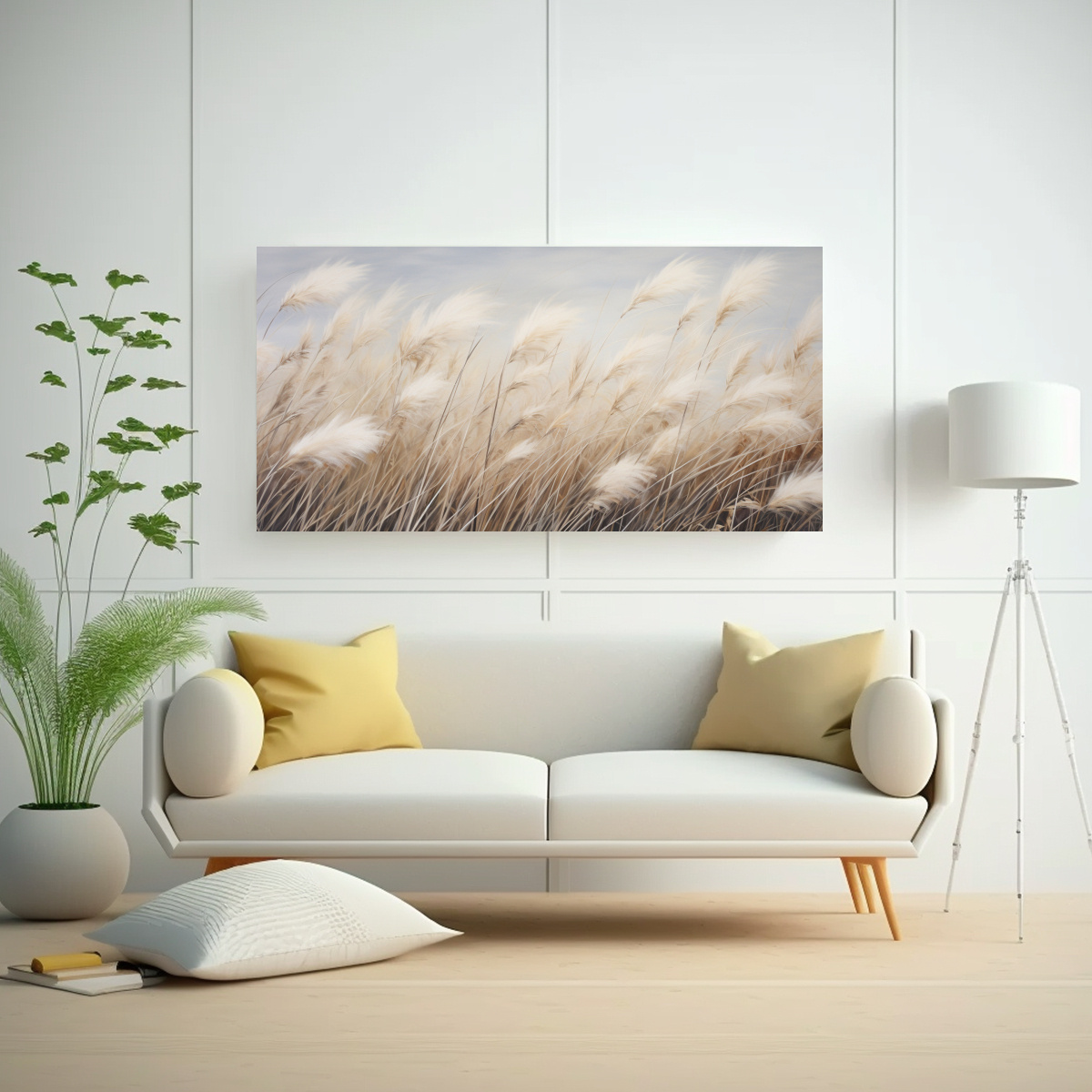 Pintura Abstracta Minimalista De Pampas Grass En Estilo óleo De Alta Calidad
