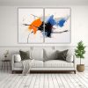 Para realzar la belleza de tu sala de estar, coloca este conjunto de telas en bastidor en una pared blanca para que resalten sus tonos beige, azul marino grisaceo y anaranjado Combínalos con muebles en tonos neutros para un ambiente sofisticado