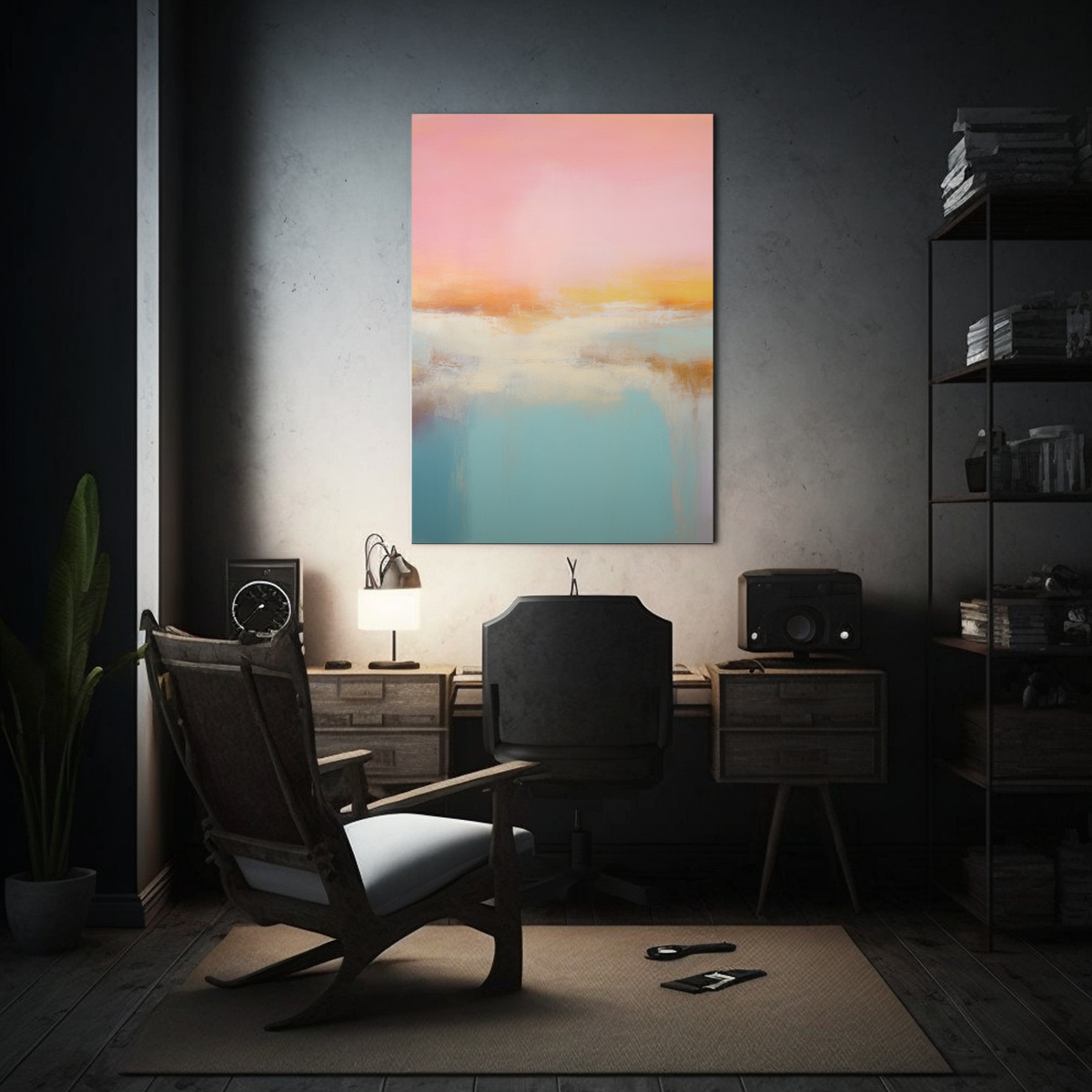 Este cuadro minimalista estilo Roth en lienzo quedará perfecto en tu sala de estar, creando un ambiente moderno y elegante Puedes colgarlo en una pared blanca para resaltar los colores plateado, gris, coral, rosado claro y turquesa También puedes combinarlo con muebles de tonos neutros para lograr una decoración sofisticada ¡Atrévete a darle vida a tus espacios con este cuadro exclusivo de DecoCuadros!
