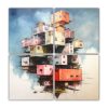 DecoCuadros te presenta este cuadro abstracto moderno colorido con efecto visual Con colores como el azul marino grisaceo, lila, carmesí, plateado, mostaza, gris, coral, amarillo claro, menta y turquesa Impreso en tela de alta calidad con bastidores de madera