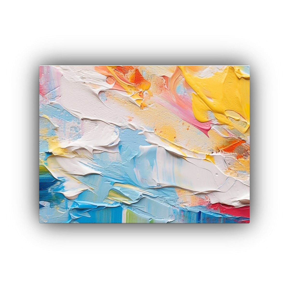 Este cuadro abstracto colorido en primer plano es ideal para decorar tu sala de estar o tu espacio de trabajo Combínalo con muebles en tonos neutros para lograr un contraste elegante y moderno Colócalo en una pared libre de distracciones para que sea el centro de atención y aporte un toque de frescura y vitalidad a la habitación