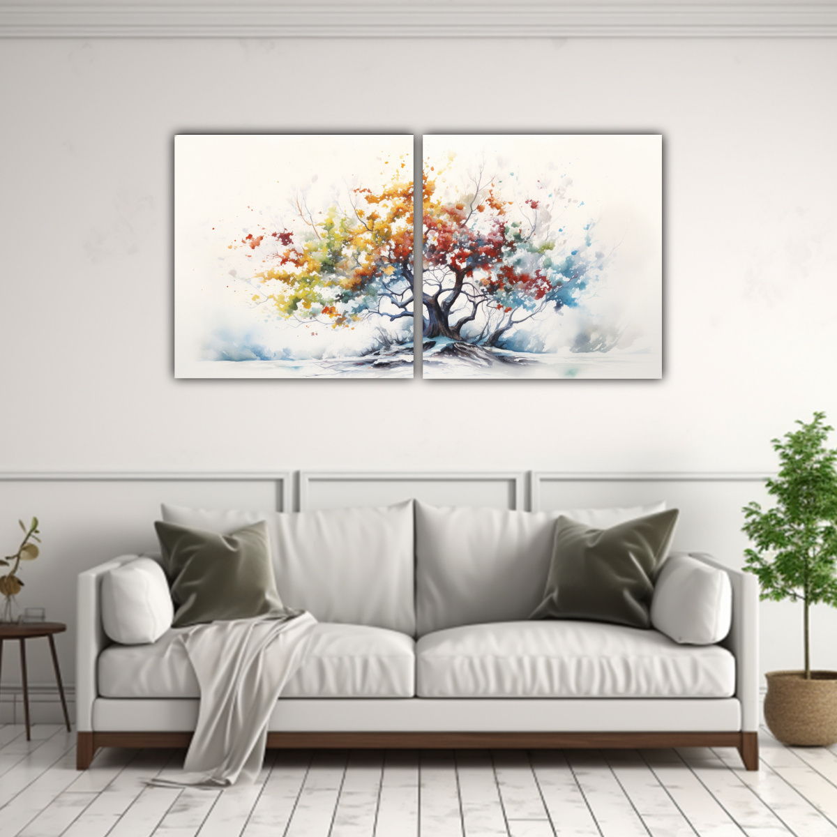 Decora tu hogar con la pintura abstracta moderna de árbol de acebo con colores blancos en acuarela Alta calidad, diseño exclusivo y entrega rápida y gratuita en Santiago