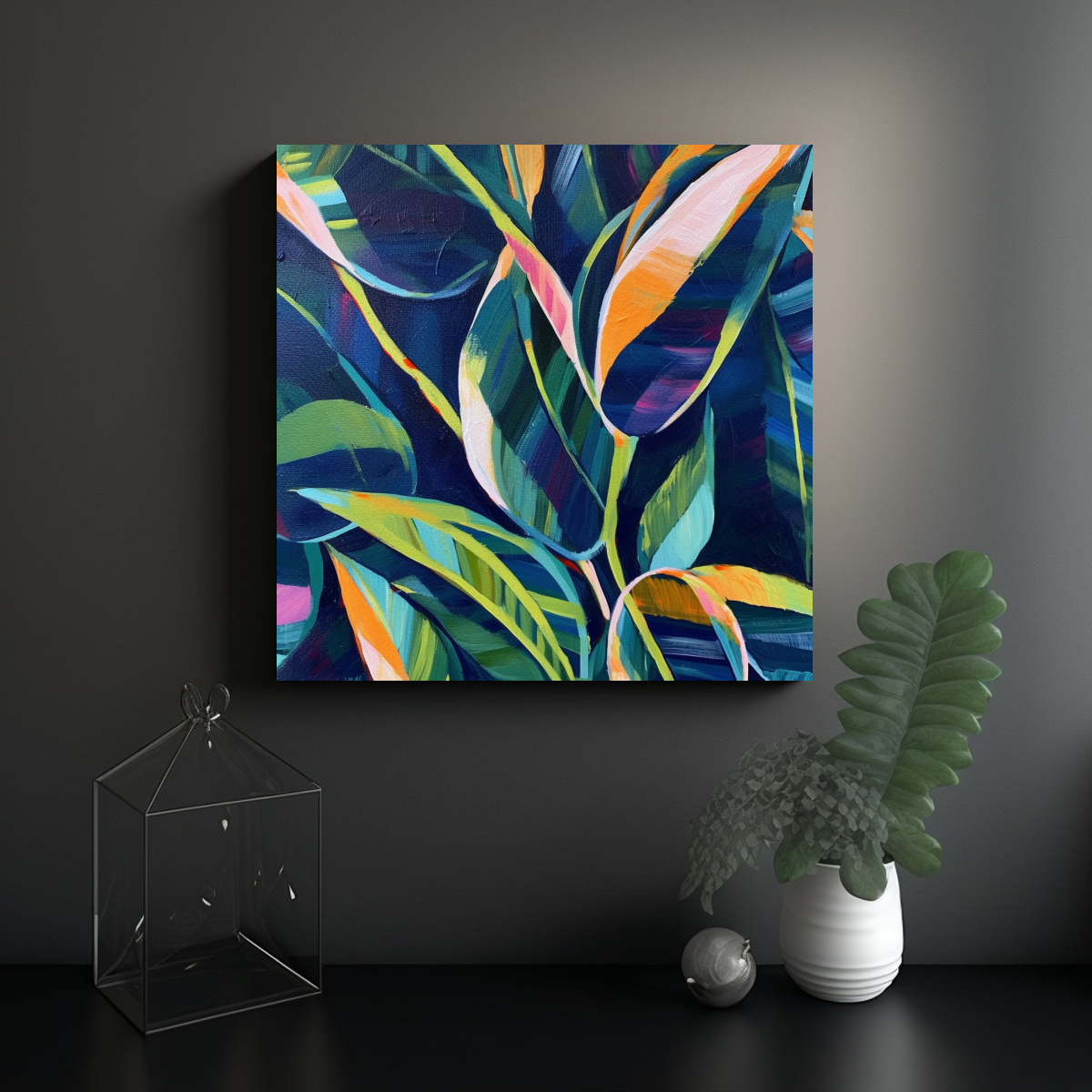 Pintura Abstracta Moderna De Planta De Interior En Tonos Joya