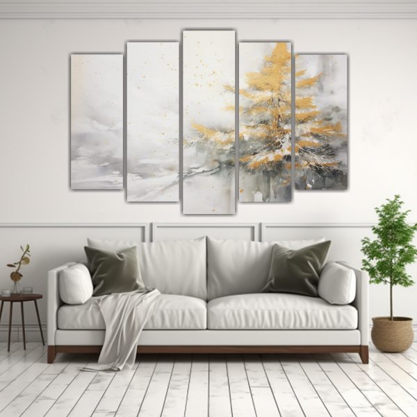 Pintura Abstracta Moderna De Textura De Pino Blanco Y Dorado