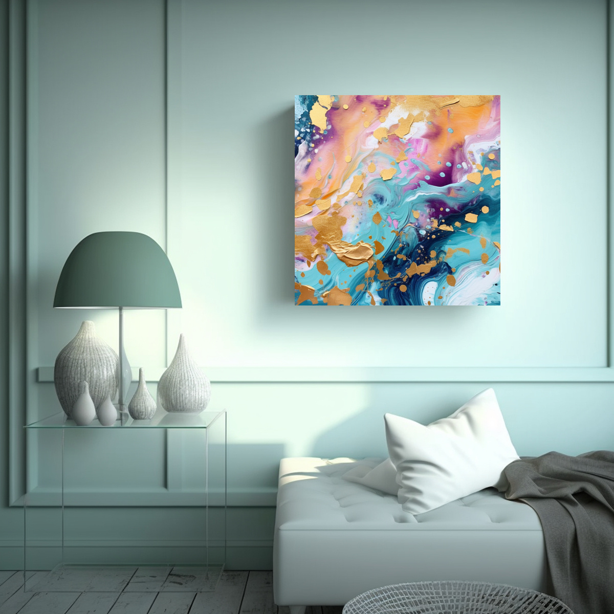 Este cuadro abstracto moderno en tonos azul marino, grisaceo, plateado, coral, turquesa, morado, beige y gris es perfecto para decorar tu sala de estar o dormitorio Combínalo con muebles de colores neutros para resaltar su belleza y crear un ambiente moderno y sofisticado