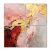 Pintura Abstracta Moderna Roja Y Dorada Para Decoración Del Salón.