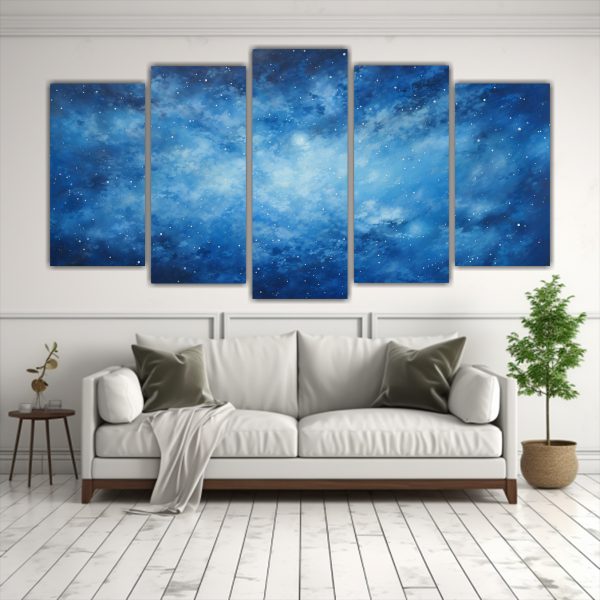 Para realzar la belleza de este cuadro abstracto Naturaleza Nocturna con Colores Azules, te recomendamos colocarlo en un muro blanco para que los tonos azules y verdes resalten aún más Combínalo con muebles de tonos neutros para crear un ambiente armonioso y moderno en tu sala de estar o dormitorio