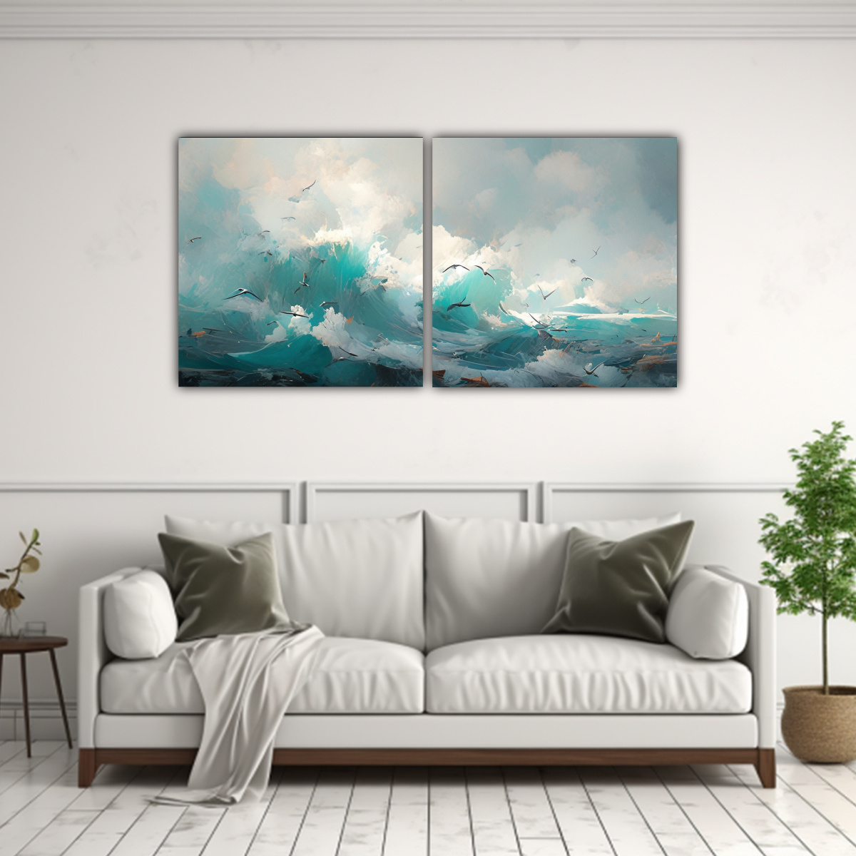 Este cuadro abstracto de mar y cielo turquesa es ideal para colocar en el living, creando un punto focal que aporta serenidad y frescura Combínalo con muebles en tonos neutros para resaltar su belleza y darle un toque moderno a tu espacio
