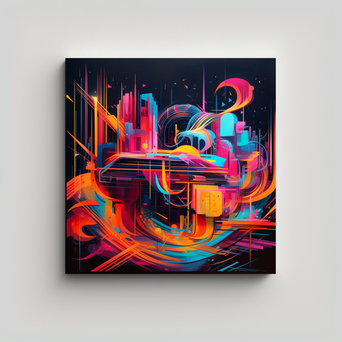 Este cuadro de pintura abstracta neon armonía cromática es perfecto para añadir un toque de color y estilo a cualquier espacio Se recomienda colocarlo en una pared blanca para resaltar su vibrante combinación de colores Ideal para salas de estar, dormitorios o espacios de trabajo ¡Dale vida a tus paredes con este diseño exclusivo de DecoCuadros!