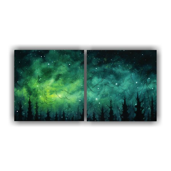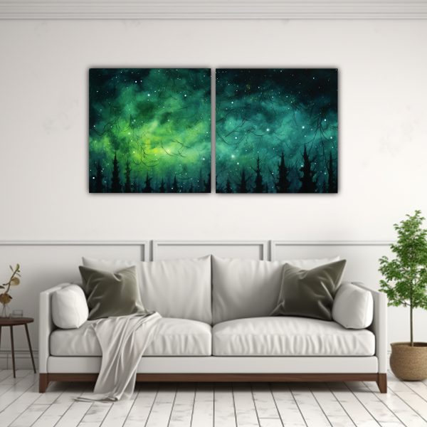 Este arte fotográfico protagoniza una noche estrellada con tonos verdes, creando una atmósfera única y misteriosa Aprovecha nuestras entregas rápidas y gratuitas en Santiago, y envíos express a regiones Renueva tu espacio con diseños exclusivos de DecoCuadros