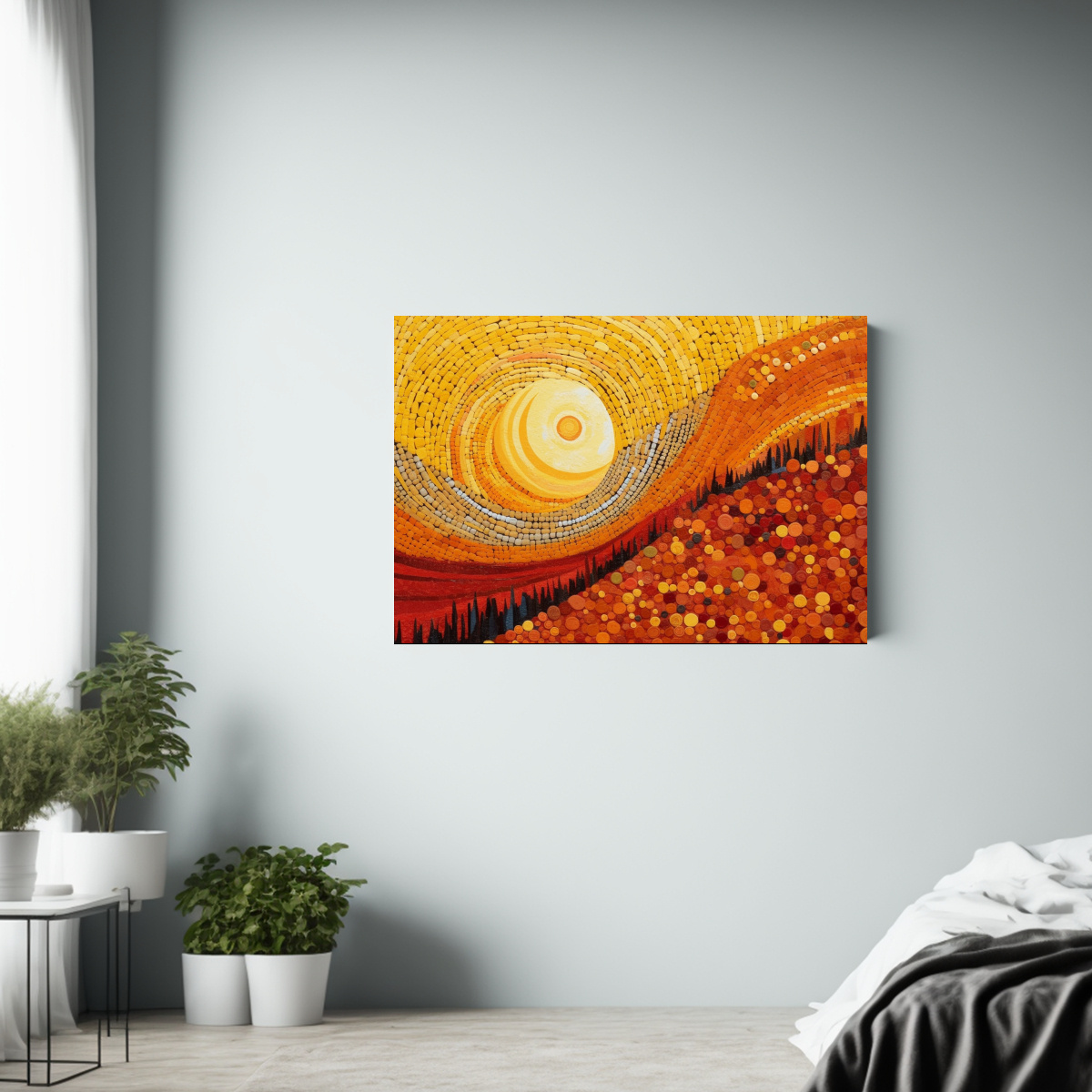 Este cuadro abstracto paisaje cálido es ideal para decorar tu sala de estar o tu dormitorio, creando un ambiente acogedor y sofisticado Combínalo con muebles de tonos neutros y detalles en dorado para resaltar su belleza y añadir un toque de elegancia a tu espacio