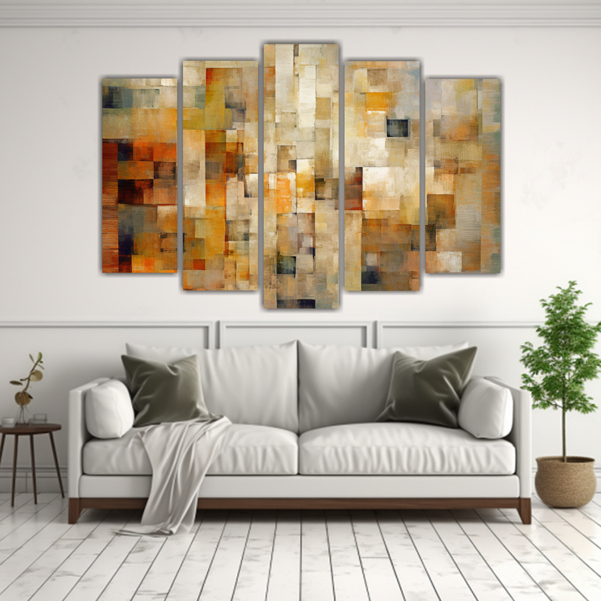 La pintura abstracta pixelada estilo tierra es perfecta para darle un toque sofisticado a tu sala de estar o dormitorio Combina este cuadro con muebles de tonos neutros y accesorios en colores cálidos para crear un ambiente acogedor y moderno ¡Haz de tu espacio un lugar único con esta obra de arte!