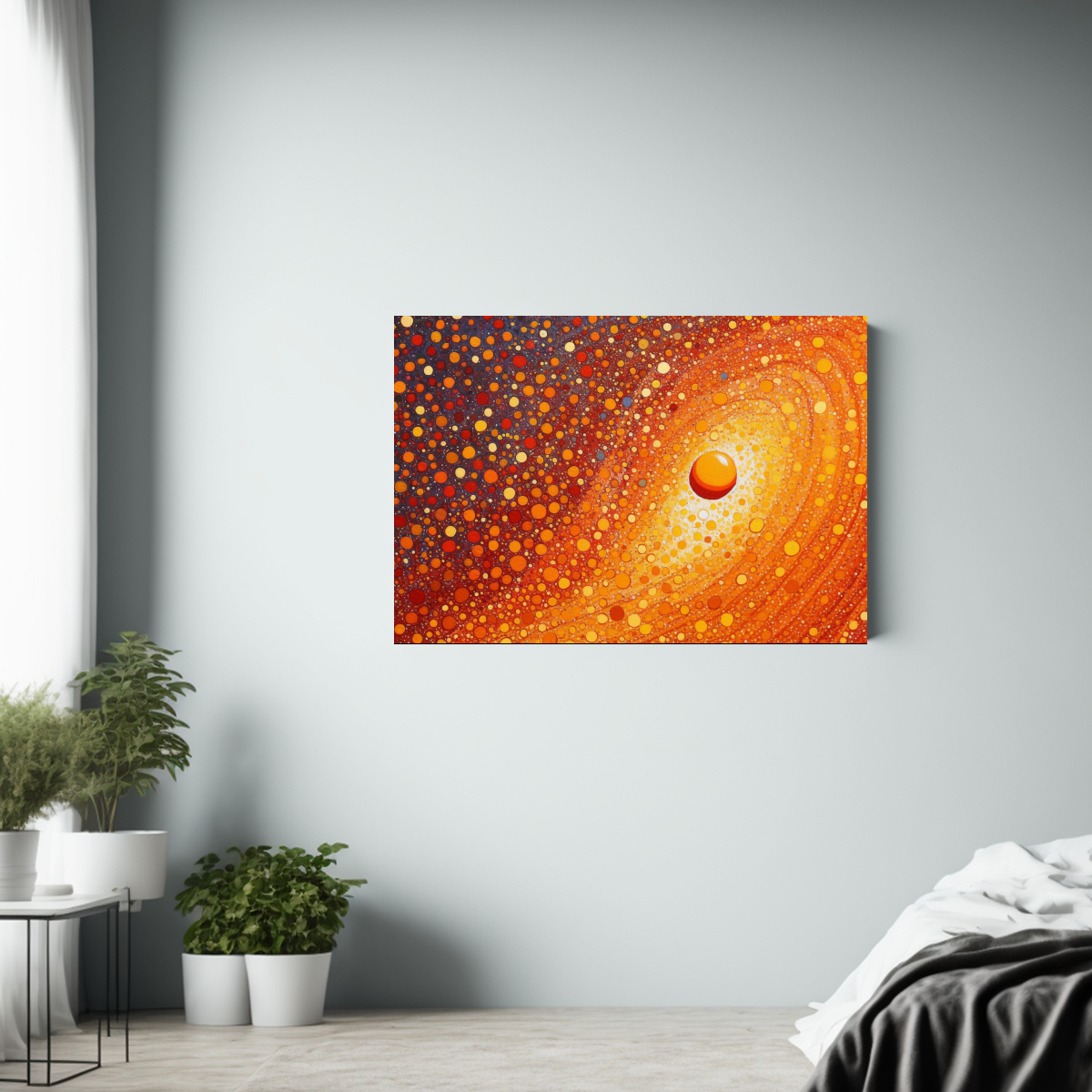 Coloca este cuadro abstracto puntillista en tu sala de estar para darle un toque moderno y sofisticado Combina con muebles de tonos neutros para resaltar los colores vibrantes de la obra, creando un ambiente único y elegante en tu hogar