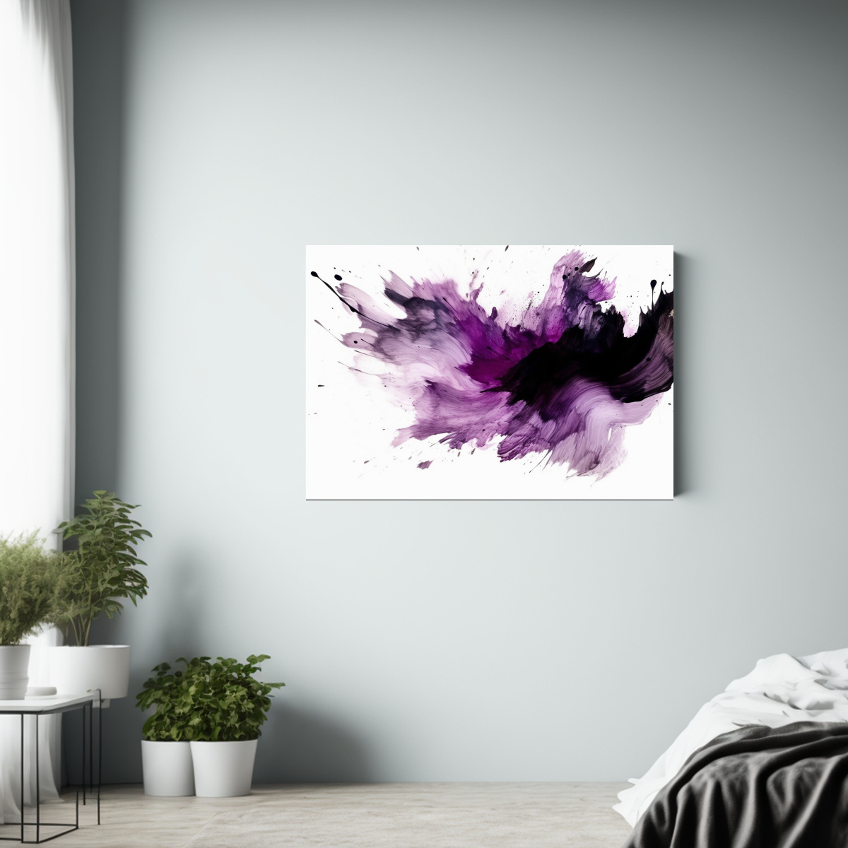Este cuadro abstracto en tonos púrpura y negro se vería perfecto en un salón moderno o una oficina creativa Combínalo con muebles minimalistas en tonos neutros para resaltar su belleza y crear un ambiente contemporáneo y elegante