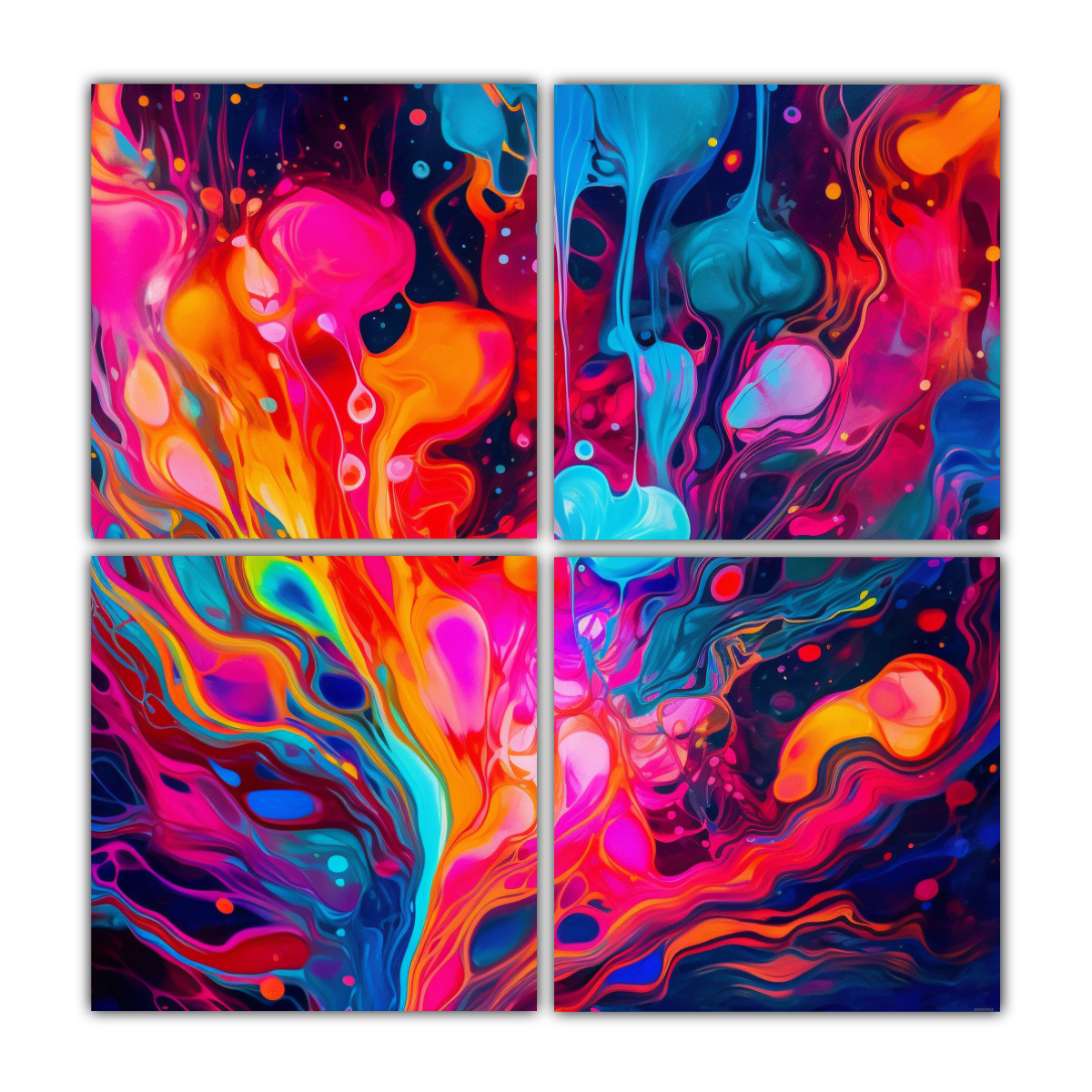 Pintura Abstracta Rectangular En Vivos Colores Neón Cuatro Artes
