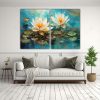 Pintura Abstracta Relieve Lienzos Lotus Flor Turquesa