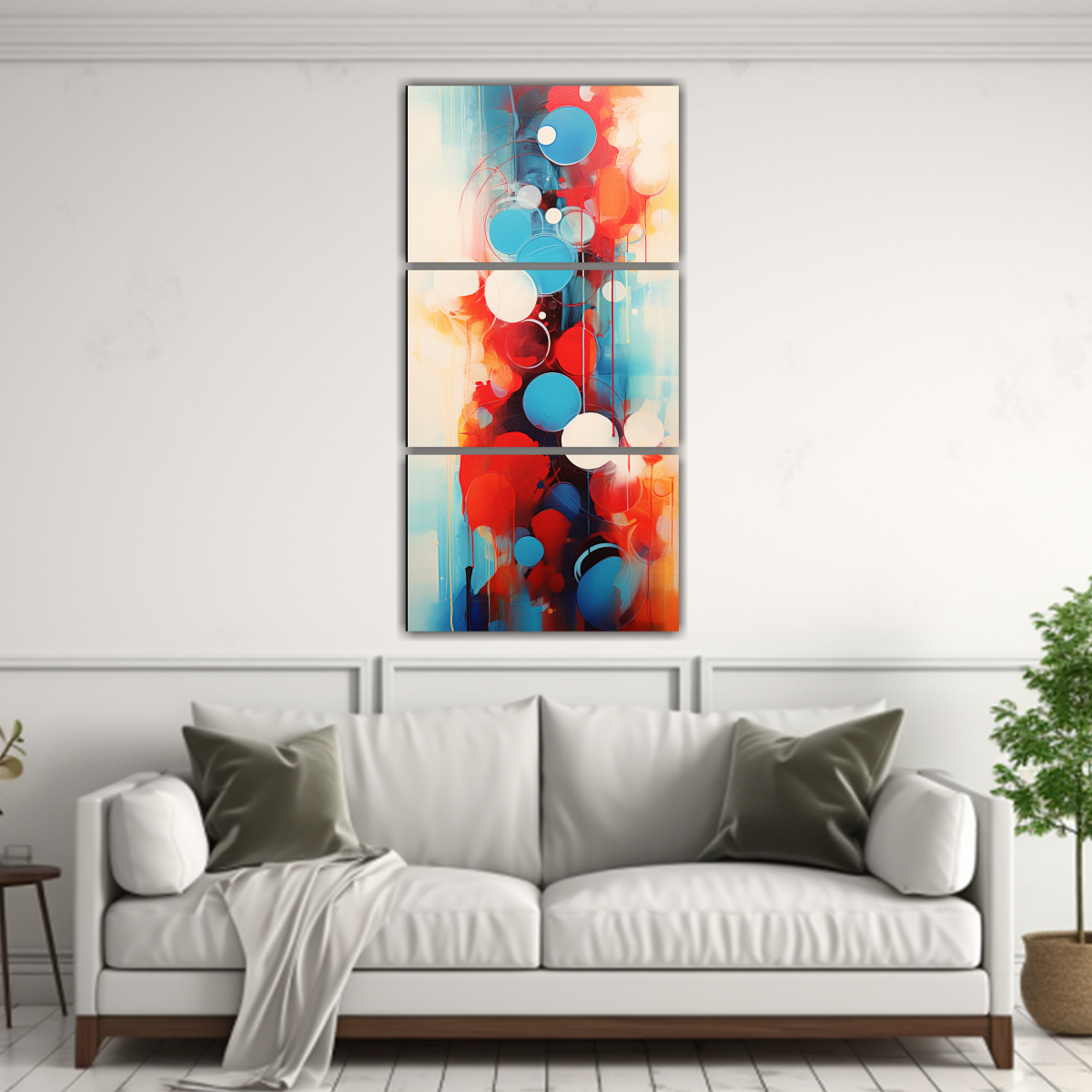 Pintura Abstracta Roja Y Azul Estilo Galería, Elegancia En 3 Cuadros.