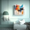 Este cuadro sería ideal para decorar una sala de estar moderna Colócalo en una pared lisa, preferiblemente de color claro, para que los colores del cuadro resalten Combínalo con muebles en tonos neutros como gris claro o beige, y agrega algunos cojines en colores que coincidan con los tonos del cuadro Esto creará una atmósfera contemporánea y sofisticada en tu hogar