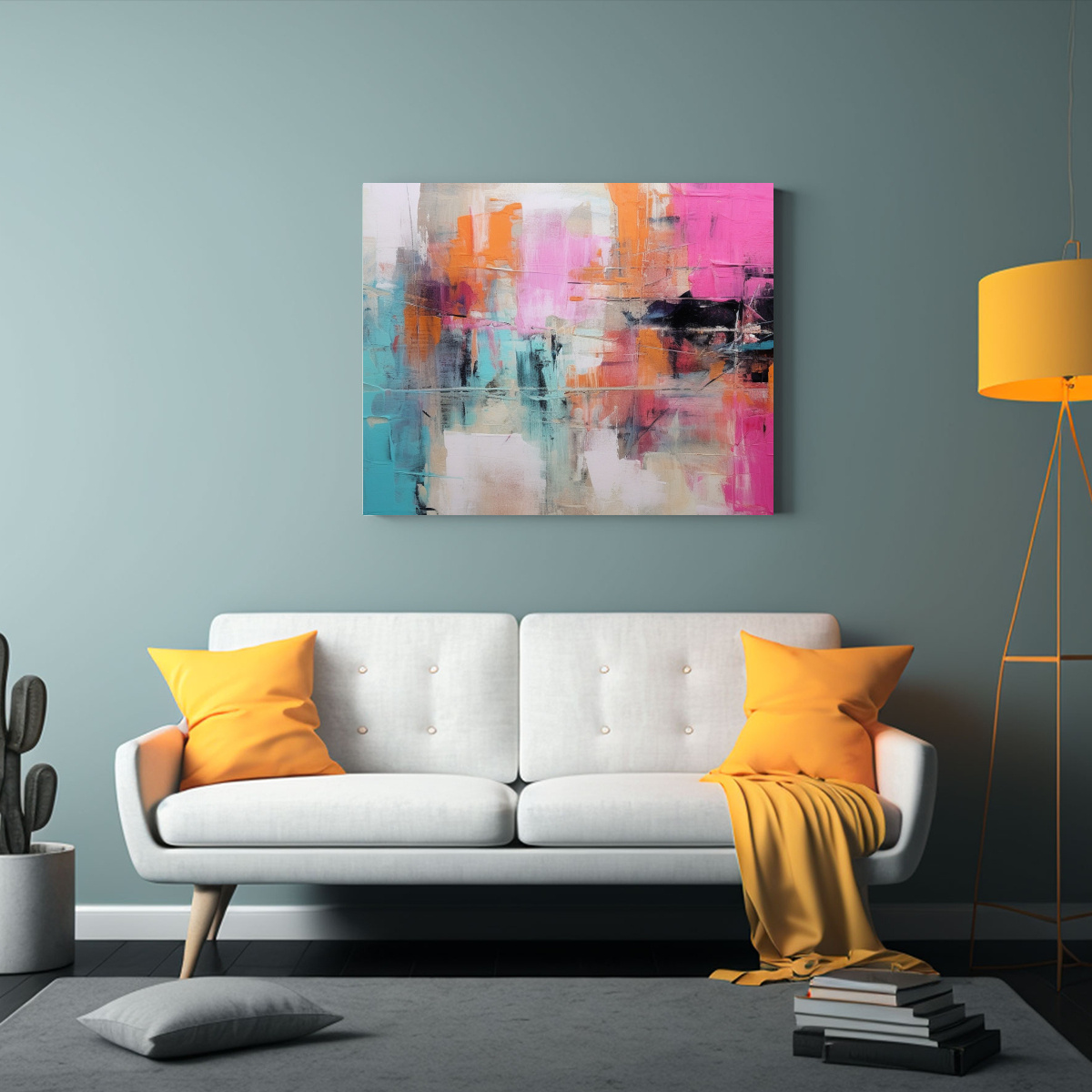 Este cuadro se vería espectacular en una pared blanca junto a muebles de tonos neutros para resaltar su vibrante paleta de colores Colócalo en tu sala de estar o dormitorio para crear un ambiente moderno y acogedor