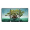 Pintura Abstracta Tres Artes Forma Poder En Blanco Y Azul Con árbol De Mango Y Agua
