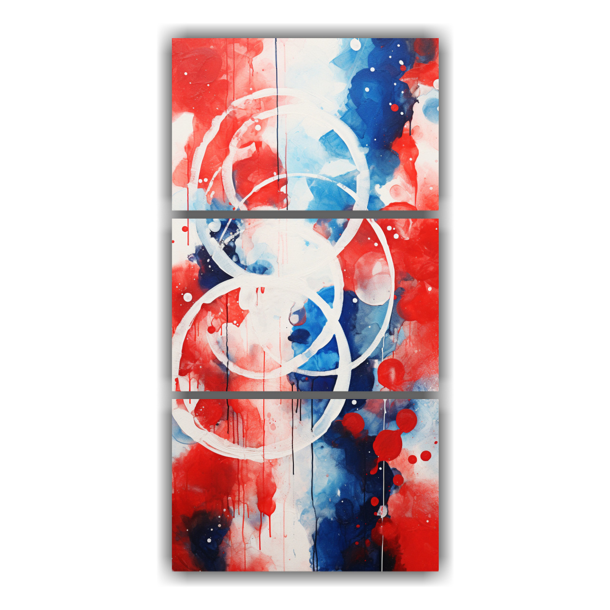 DecoCuadros te ofrece el cuadro abstracto ‘Pintura abstracta Tres Cuadros Conceptual Calidez de la bandera noruega’, con la mejor calidad del mercado y precios económicos Nuestros cuadros decorativos impresos en tela de alta calidad y montados en bastidores de madera, son perfectos para darle vida a tus espacios Con colores como el carmesí, azul marino grisáceo, beige, coral, turquesa, rosado claro y lila, este cuadro es ideal para agregar calidez y estilo a tus paredes Además, ofrecemos entregas rápidas y gratuitas en Santiago, y envíos a regiones express ¡No te lo pierdas!