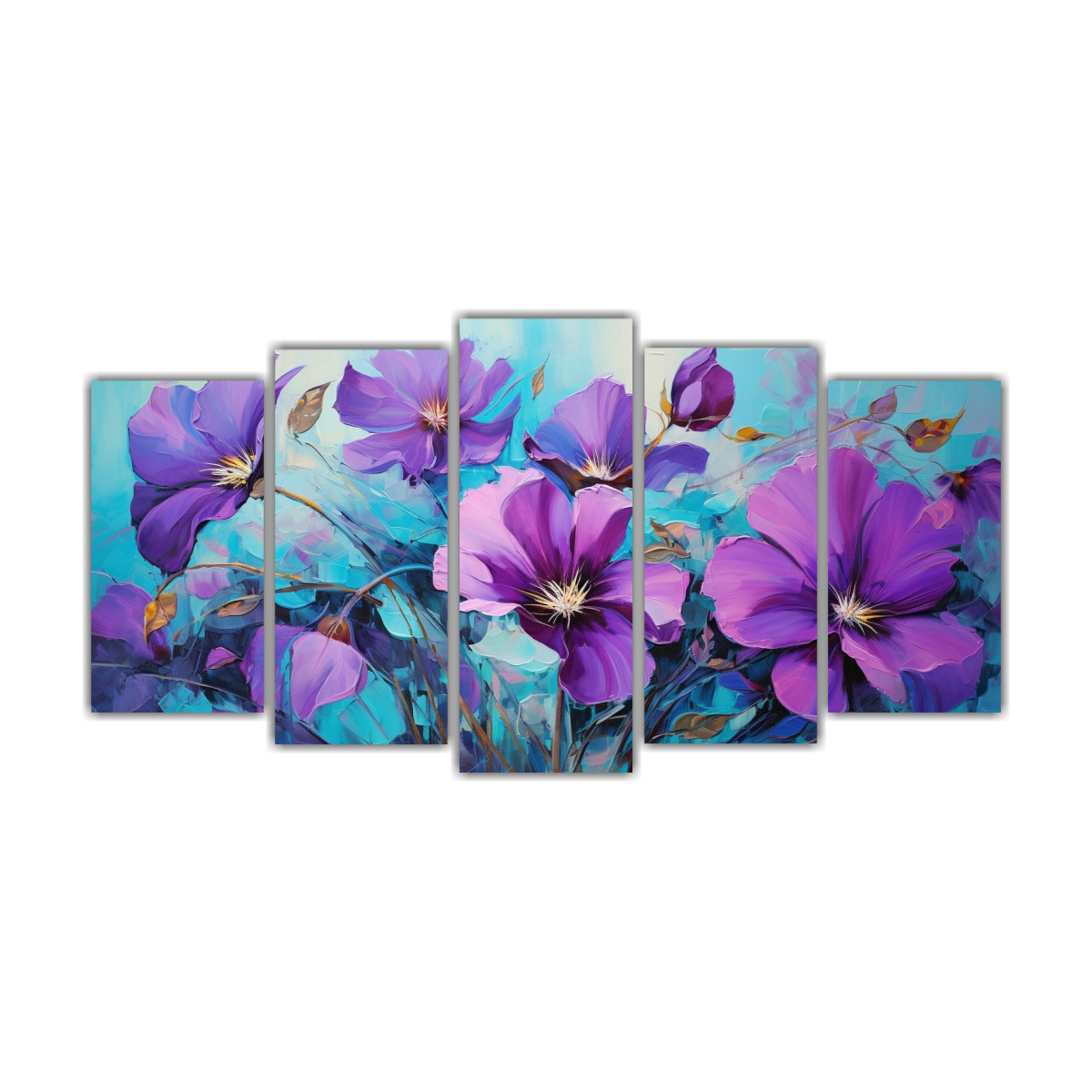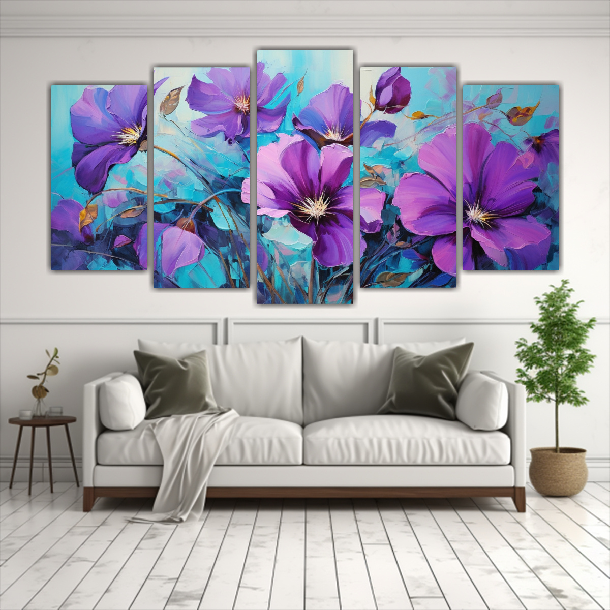 Este cuadro abstracto urbano en lienzo con flores púrpuras y turquesas es perfecto para crear un punto focal en tu sala de estar Combínalo con muebles y accesorios en tonos neutros como el blanco y el gris para resaltar aún más los colores vibrantes del cuadro Colócalo sobre una pared blanca para crear un contraste impactante o sobre una pared gris para lograr un efecto más sofisticado ¡Deja volar tu imaginación y crea un ambiente único y moderno con este cuadro de DecoCuadros!