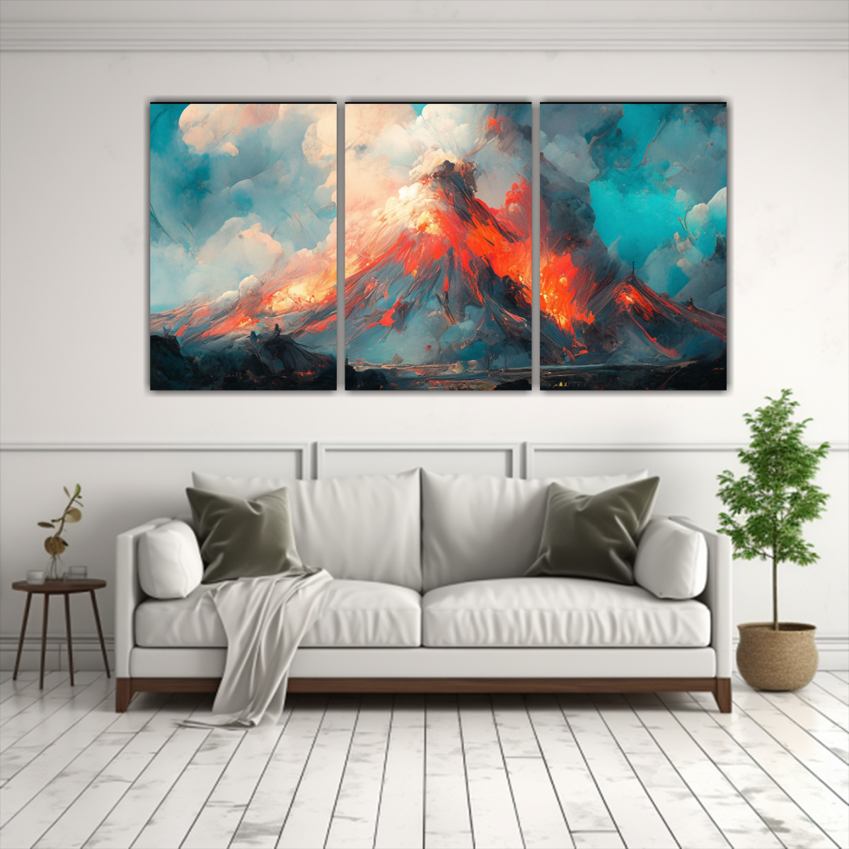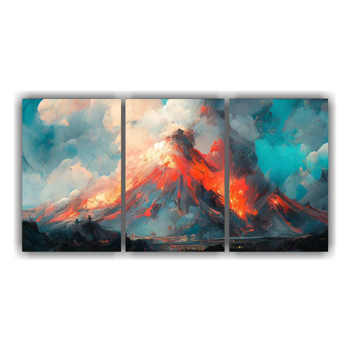 Pintura Abstracta Vanguardista De Un Volcán Con Colores Turquesa