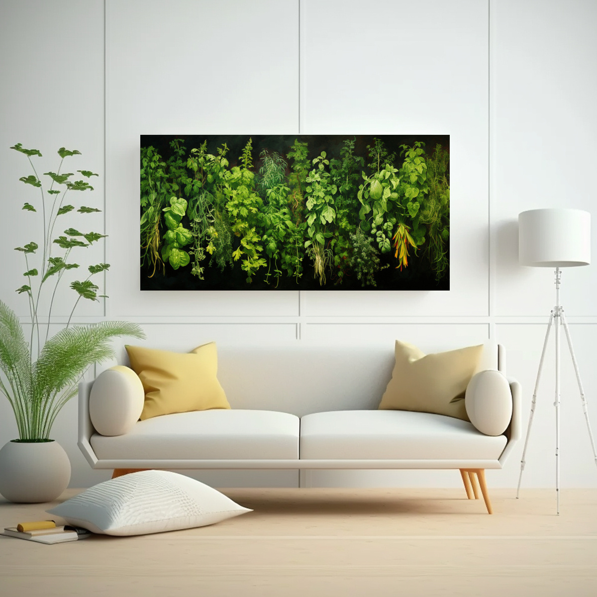 Renueva tu hogar con este hermoso cuadro abstracto vintage de hierbas detalladas en estilo Estilo óleo Los colores dorado, negro, gris, chocolate, azul marino grisaceo, amarillo claro y carmesí le darán elegancia y estilo a tu espacio Combínalo en tu sala de estar para agregar un toque de sofisticación y naturaleza