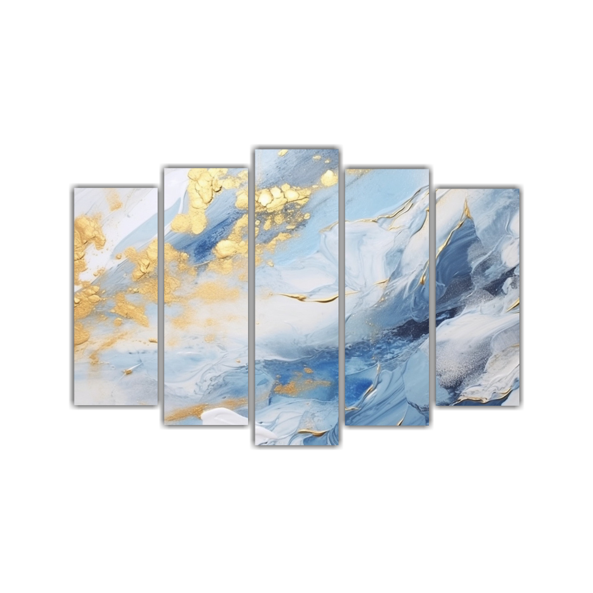 Pintura Abstracta Vintage Moderna Azul Y Blanca Con Detalles Dorados