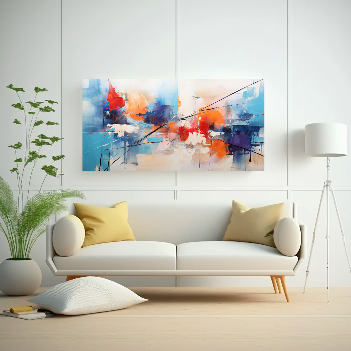 Este cuadro es ideal para colocar en la sala de estar sobre un sofá de color crema, creando un contraste elegante y moderno Combínalo con cojines en tonos cálidos como naranja o beige para resaltar su belleza natural
