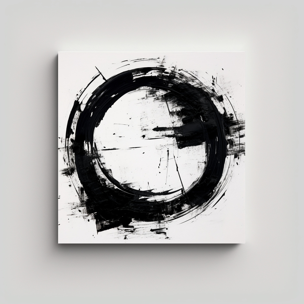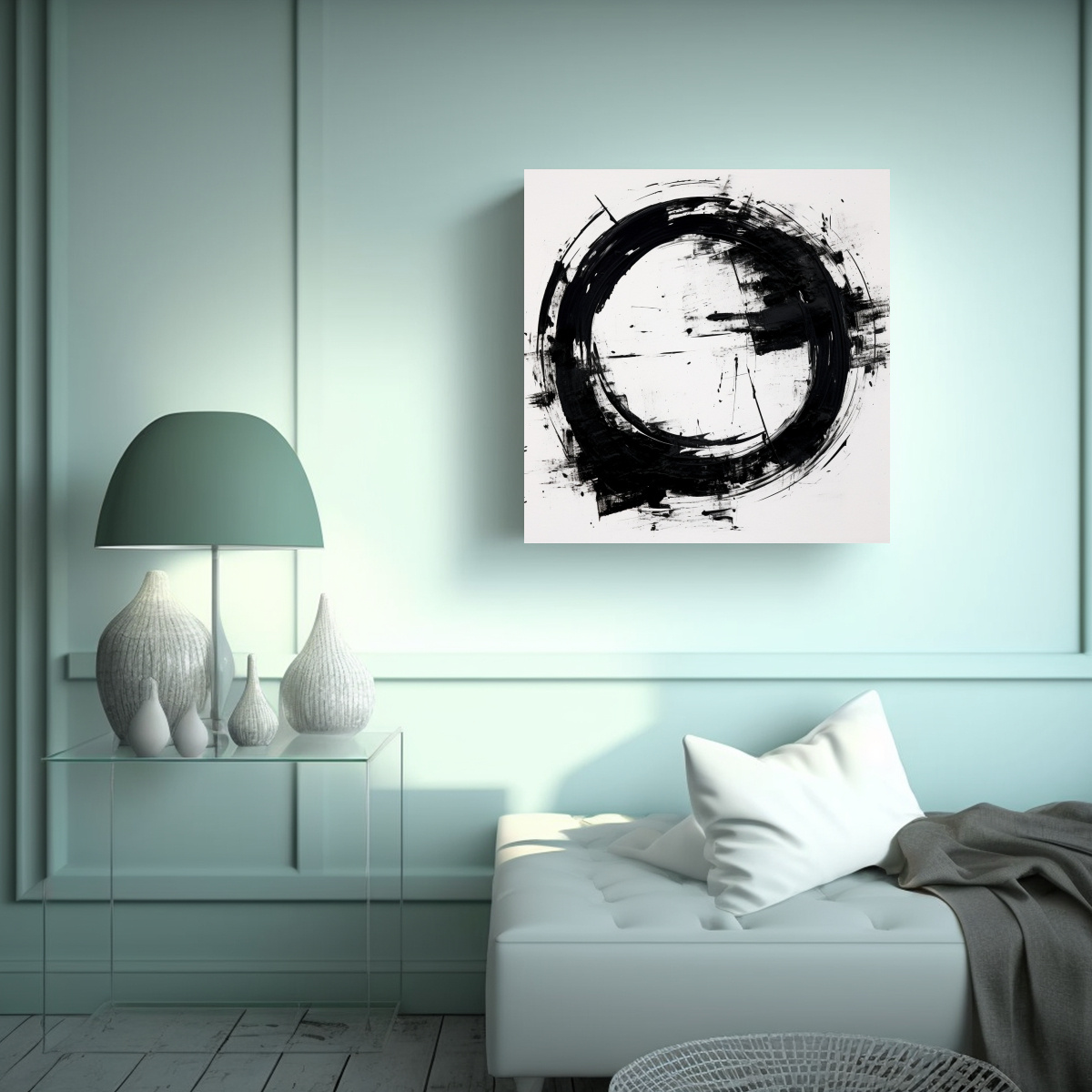 Pintura Acrílica En Blanco Y Negro Con Círculos De Kloft En El Tema De Representación En Lienzo