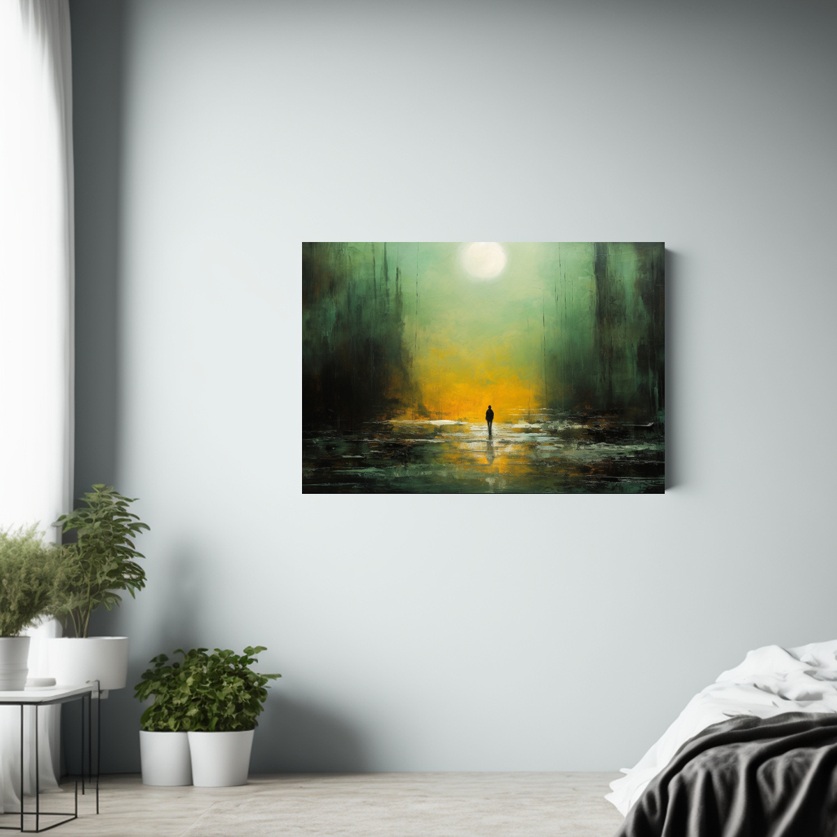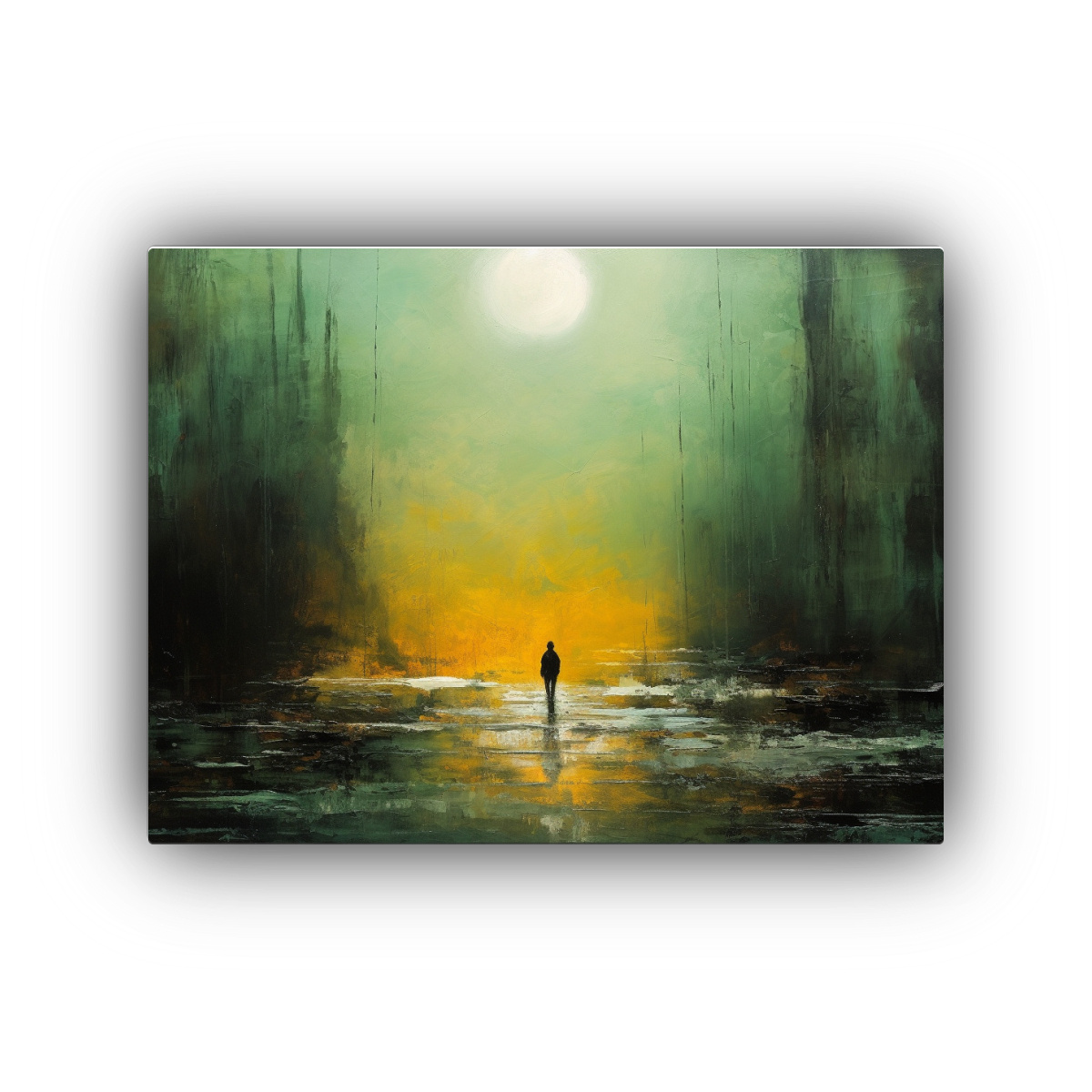 Pintura Acrílica Expresionista De Hombre En La Distancia Para Decoración