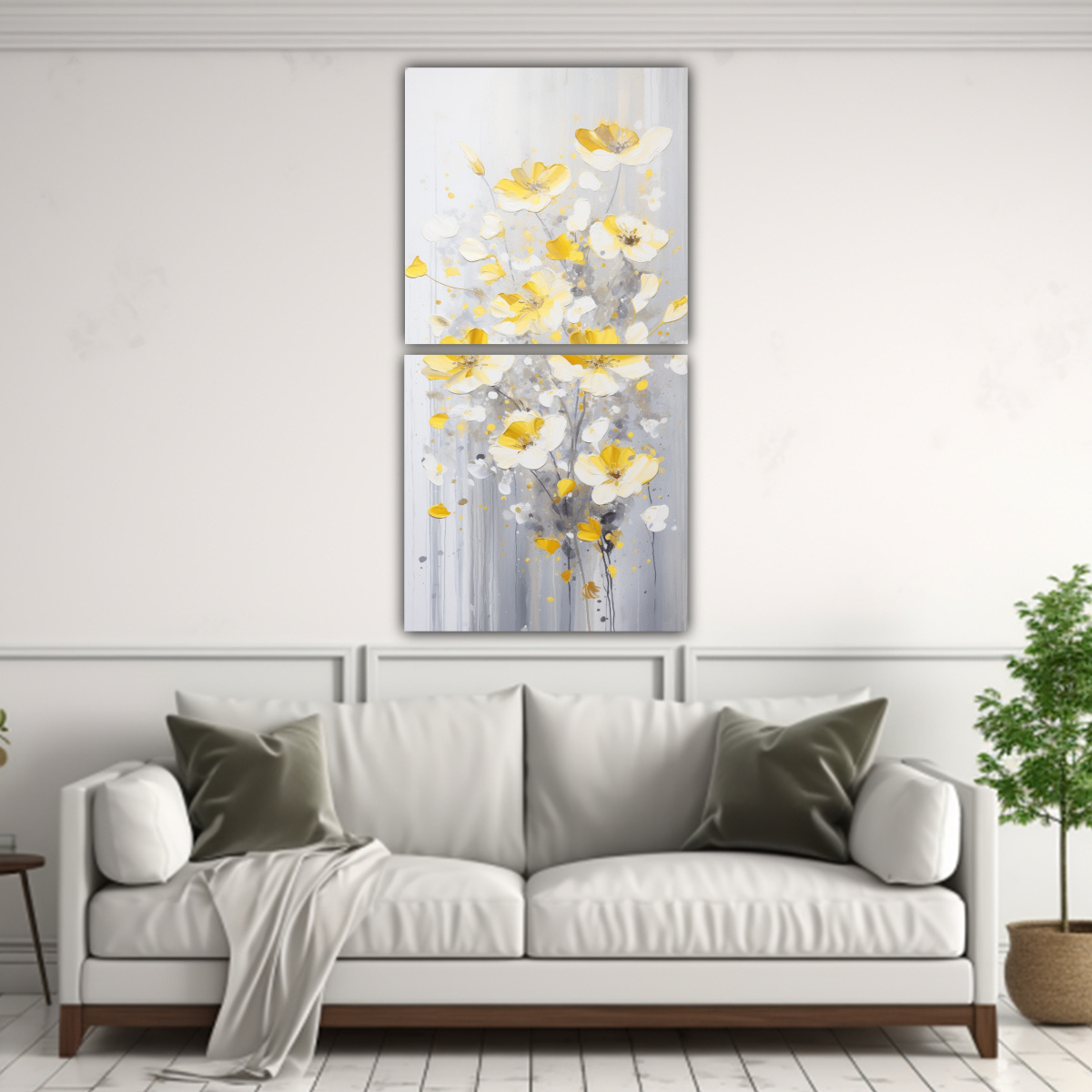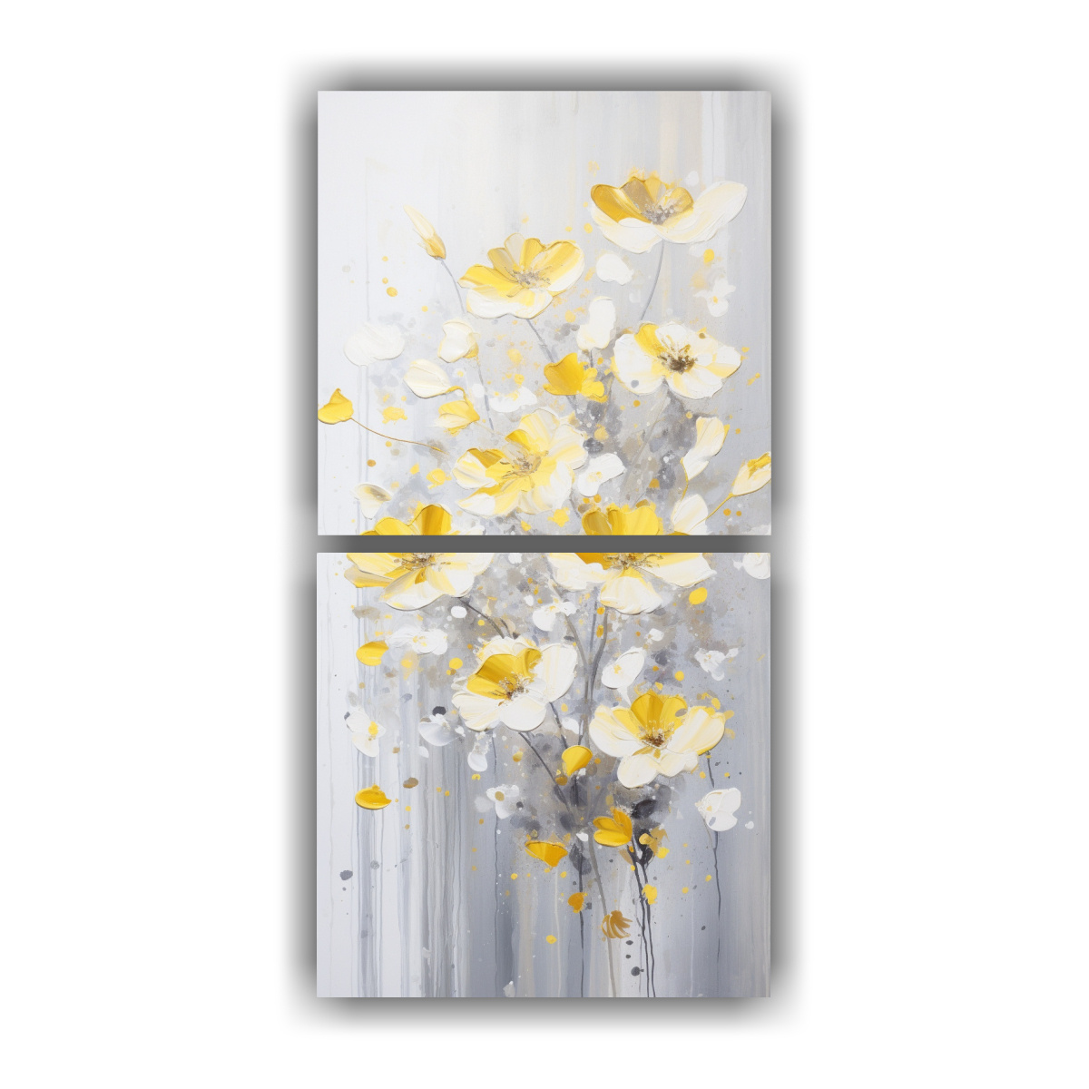 DecoCuadros te presenta el cuadro acrílico intensa en blanco: Dos Artes Patron Linda Esta pintura acrílica es perfecta para darle un toque moderno y elegante a cualquier espacio Con colores vibrantes como el mostaza, beige, plateado, dorado y gris, este cuadro es ideal para agregar un toque de color y estilo a tu hogar u oficina Nuestra tienda online ofrece la mejor calidad del mercado a precios económicos Además, contamos con envío gratis en Santiago y envíos express a regiones ¡Decora con estilo y adquiere este diseño exclusivo de DecoCuadros!