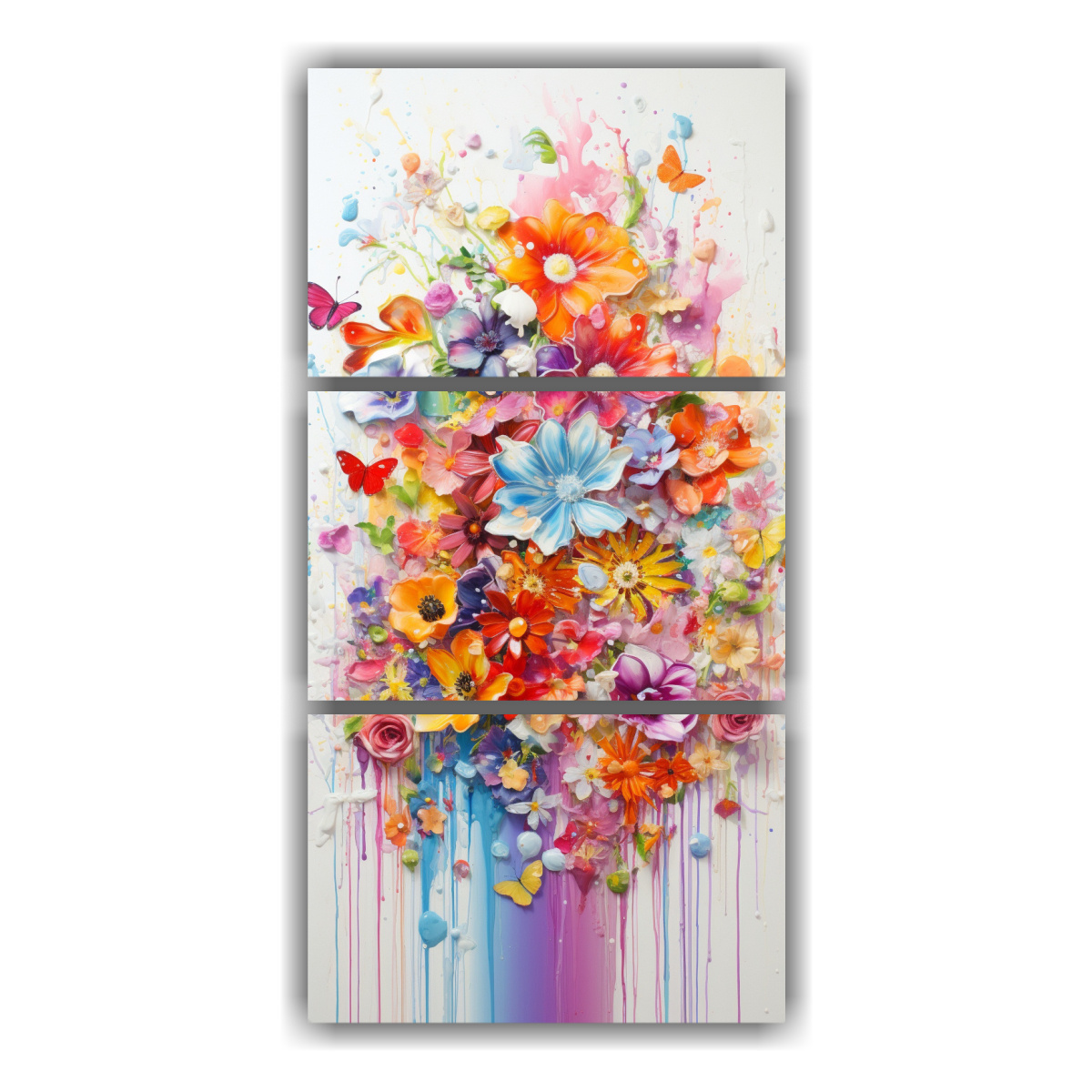 Este cuadro tríptico se vería espectacular en el salón principal de tu hogar, sobre un sofá gris claro para resaltar los tonos vibrantes Complementa con cojines en tonos coral y turquesa para un ambiente moderno y acogedor