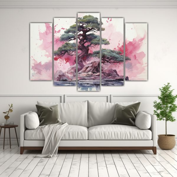 Renueva tus espacios con este hermoso cuadro acuarela bonsái en tonos rosa y colores elegantes Transforma tu sala de estar o dormitorio con esta pieza única y exclusiva Ideal para combinar con muebles de tonos neutros y aportar un toque de sofisticación